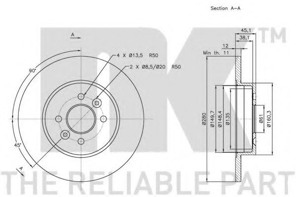 Диск тормозной RENAULT KANGOO 01- задний D 280мм. NK 203941, производитель NK, номер автозапчасти 203941 купить по цене 2 660 руб. в онлайн магазине мерседес автозапчастей.